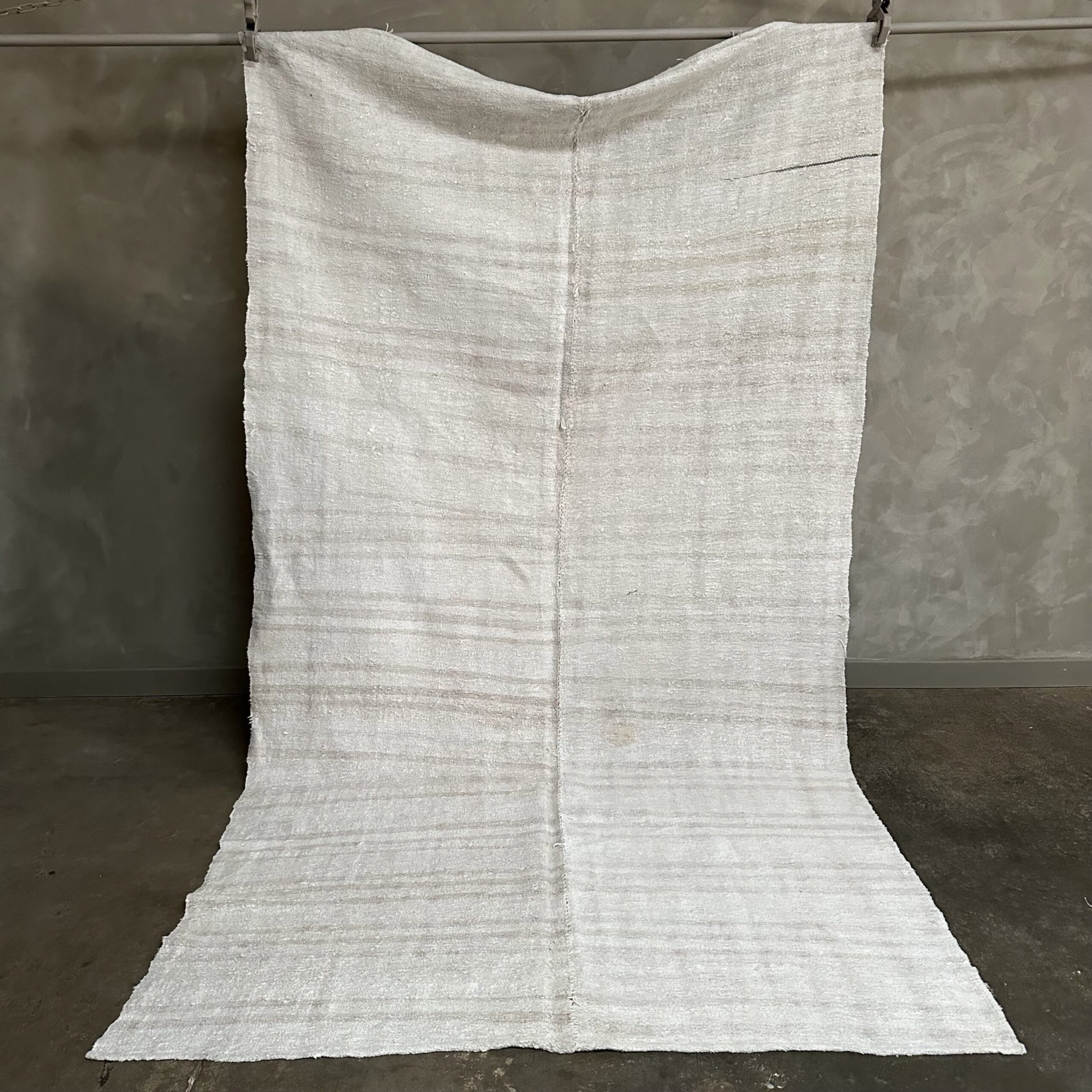 Vintage Turkish rug with stripes. Our latest collection has arrived from Turkey, these are great to use as a rug, or let us create a custom ottoman for you out of this piece. Flat-weave, wool and goat hair, make these extremely durable with great use for high traffic areas.